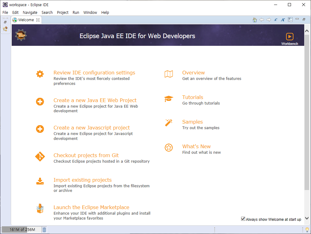 실행하면 작업 경로가 뜨고 본이에 맞게 경로 설정하면 이클립스가 뜬다.