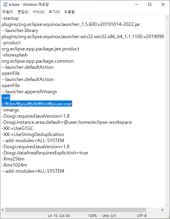 이클립스 실행시 별도로 환경설정하기 싫으면