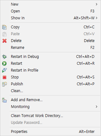 생성된 서버목록에 마우스 오른쪽을 누르고