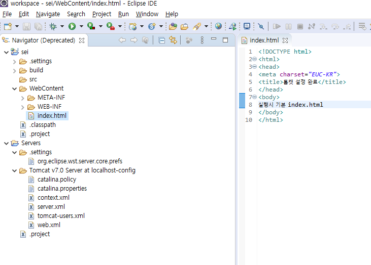 대충 메인index.html을 하나 잽싸게 생성한다. WebContent에 생성.